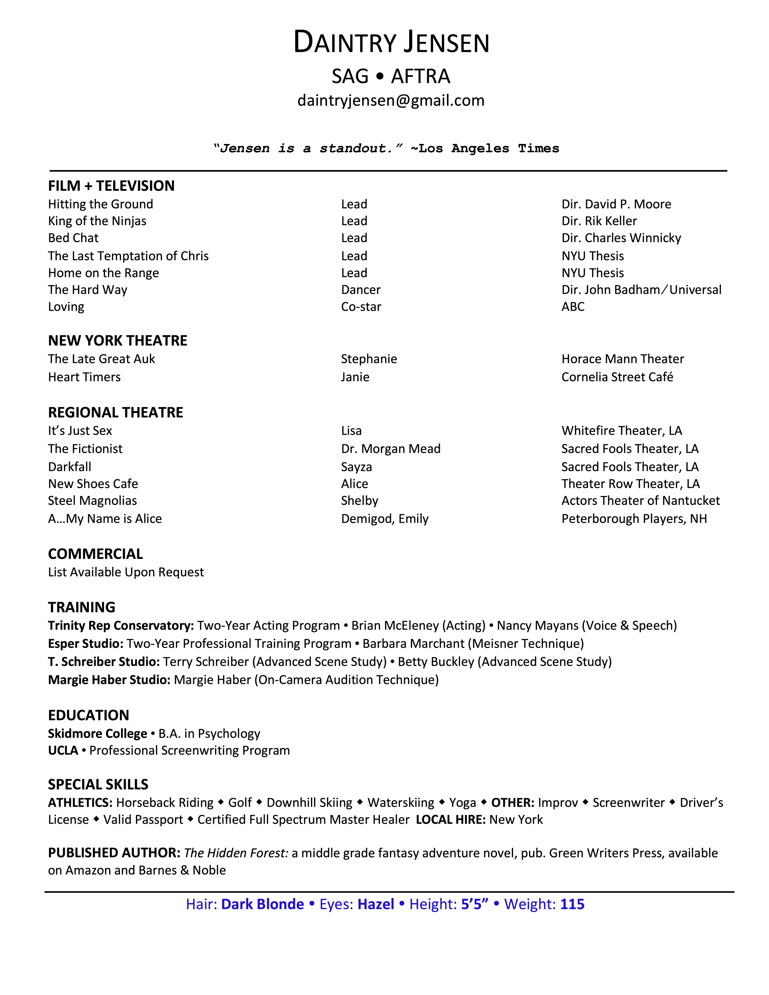 Download headshot + resume using the buttons below. You can also find Daintry on: